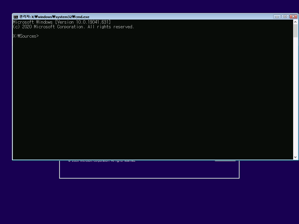 여기서 Shift + F10 누르면 cmd.exe 창이 뜬다.